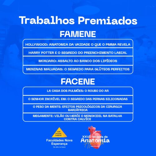 Confira abaixo os trabalhos premiados na XXVI mostra de anatomia aplicada 2025.2. Parabéns a todos que participaram dessa incrível ação.