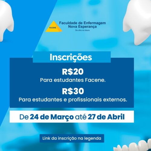 A Faculdade de Enfermagem Nova Esperança (FACENE) realizará, no dia 28 de abril de 2026, o VIII Workshop de Odontologia Avançada, evento voltado à atualização científica e ao aprimoramento prático de estudantes e profissionais da área odontológica. A atividade acontecerá no Laboratório de Odontologia da instituição, com carga horária total de 4 horas.
